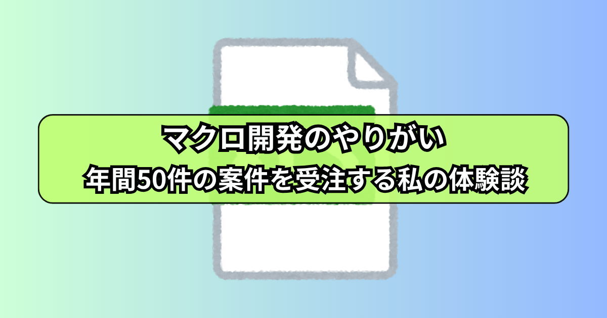 この記事では、私の実体験をもとに「マクロ開発のやりがい」と「VBAスキルを収益につなげる方法」をわかりやすくお伝えします。